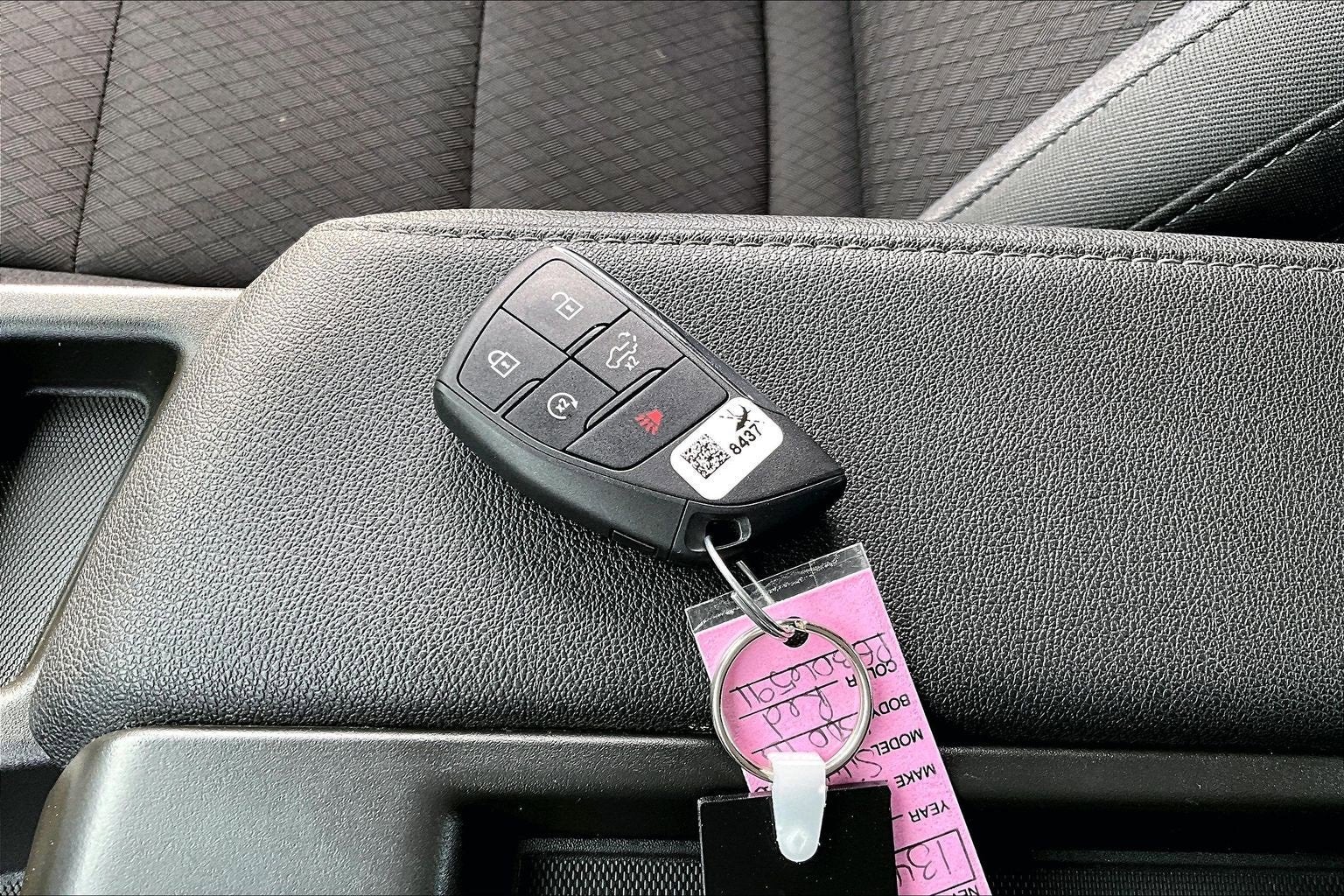 10-Speed Automatic, 4WD, Black Cloth, 10-Way Power Driver Seat w/Lumbar, 120-Volt Bed Mounted Power Outlet, 120-Volt Instrument Panel Power Outlet, 170 Amp Alternator, 220 Amp Alternator, 3.5 Monochromatic Display Driver Info Center, 4-Wheel Disc Brakes, 40/20/40 Front Split-Bench Seat, 6 Speakers, 6-Speaker Audio System, ABS brakes, Air Conditioning, Alloy wheels, AM/FM radio: SiriusXM, Apple CarPlay/Android Auto, Auto High-beam Headlights, Auto-Locking Rear Differential, Automatic Emergency Braking, Auxiliary External Transmission Oil Cooler, Black Name Plates (LPO), Black Tailgate CHEVROLET Lettering (LPO), Bluetooth® For Phone, Brake assist, Chevrolet Connected Access Capable, Cloth Seat Trim, Color-Keyed Carpeting Floor Covering, Compass, Custom Convenience Package, Dark Essentials Package (LPO), Deep-Tinted Glass, Delay-off headlights, Driver door bin, Driver vanity mirror, Dual Exhaust w/Polished Outlets, Dual front impact airbags, Dual front side impact airbags, Dual Rear USB Ports (Charge Only), Electric Rear-Window Defogger, Electrical Steering Column Lock, Electronic Cruise Control, Electronic Stability Control, External Engine Oil Cooler, EZ Lift Power Lock & Release Tailgate, Following Distance Indicator, Forward Collision Alert, Front anti-roll bar, Front Center Armrest w/Storage, Front Pedestrian Braking, Front reading lights, Front Rubberized Vinyl Floor Mats, Front wheel independent suspension, Fully automatic headlights, HD Rear Vision Camera, Heated door mirrors, Heavy-Duty Air Filter, Hill Descent Control, Hitch Guidance, Illuminated entry, IntelliBeam Automatic High Beam On/Off, Lane Keep Assist w/Lane Departure Warning, LED Cargo Area Lighting, Low tire pressure warning, Manual Tilt Wheel Steering Column, Manual Tilt/Telescoping Steering Column (DISC), Not Equipped w/Rear USB Ports, Not Equipped w/Steering Column Lock, Occupant sensing airbag, OnStar & Chevrolet Connected Services Capable, Outside temperature display, Overhead airbag, Overhead console, Panic alarm, Passenger door bin, Passenger vanity mirror, Performance Red Recovery Hooks, Power door mirrors, Power driver seat, Power Front Windows w/Driver Express Up/Down, Power Front Windows w/Passenger Express Down, Power Rear Windows w/Express Down, Power steering, Power windows, Preferred Equipment Group 2CX, Premium audio system: Chevrolet Infotainment 3, Radio data system, Radio: Chevrolet Infotainment 3 System, Rear 60/40 Folding Bench Seat (Folds Up), Rear reading lights, Rear Rubberized-Vinyl Floor Mats, Rear step bumper, Rear window defroster, Remote Keyless Entry, Remote keyless entry, Remote Vehicle Starter System, Security system, SiriusXM Radio, Speed control, Speed-sensing steering, Split folding rear seat, Standard Tailgate, Suspension Package, Tachometer, Theft Deterrent System (Unauthorized Entry), Tilt steering wheel, Traction control, Trailering Package, Trip computer, Variably intermittent wipers, Voltmeter, Wheels: 18 x 8.5 Black Painted Aluminum, Wi-Fi Hot Spot Capable, Wireless Phone Projection, 10-Speed Automatic, 4WD, Black Cloth. CARFAX One-Owner. 2023 Chevrolet Silverado 1500 Red Hot EcoTec3 5.3L V8 Custom Trail Boss 10-Speed Automatic 4WD