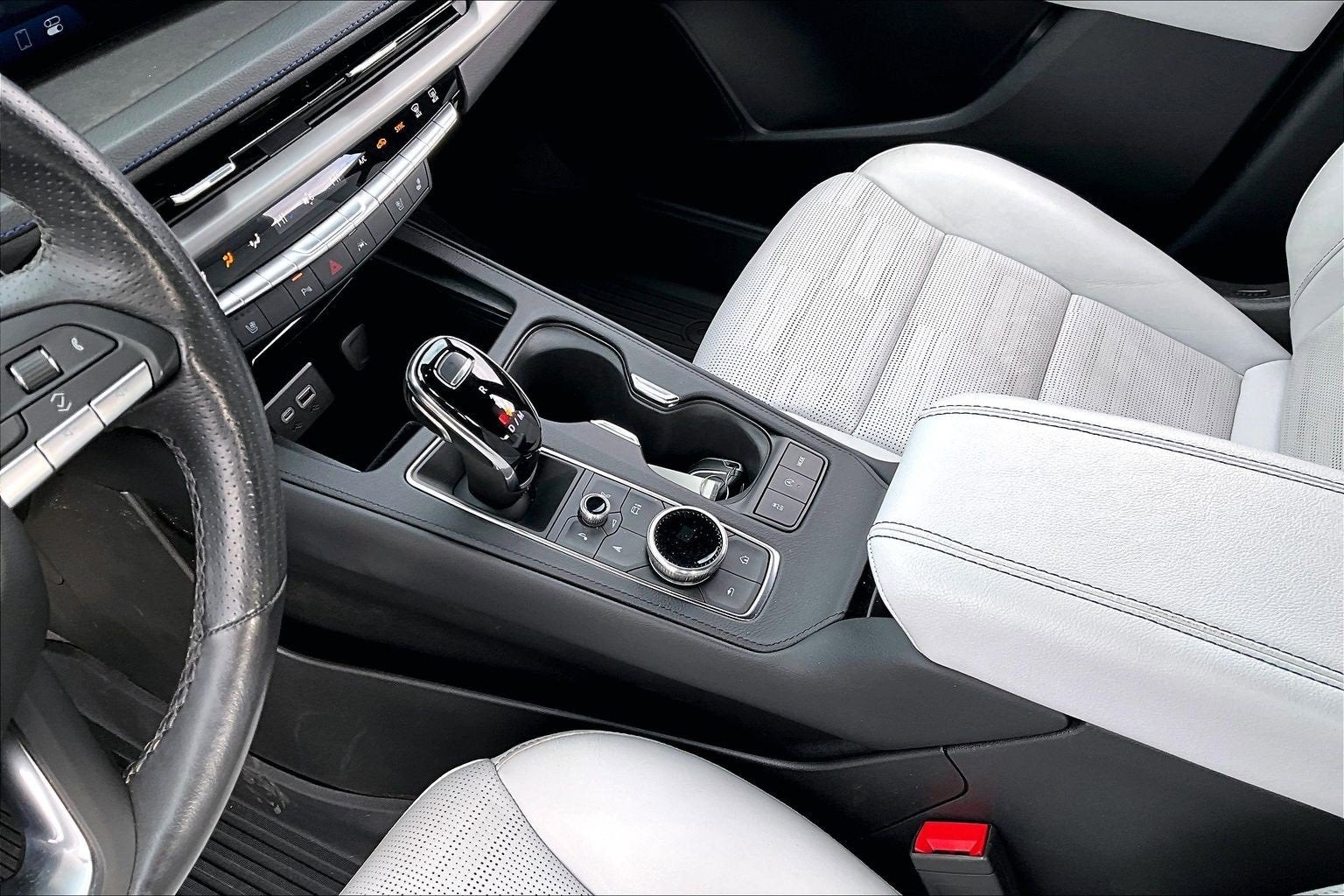 Interior Color Sky Cool Gray/Jet Black With Santorini Blue Accents, Leather Seating Surfaces With Mini-Perforated Inserts